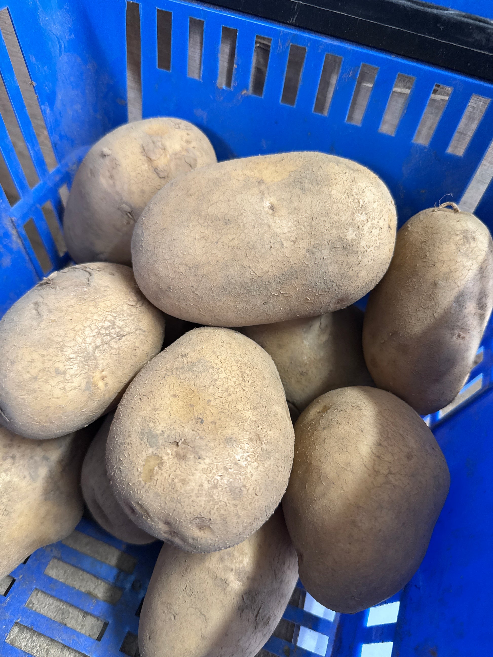 Baking Tatties are sold each and weigh approx. 200g each. Great size for baking or making into chips.